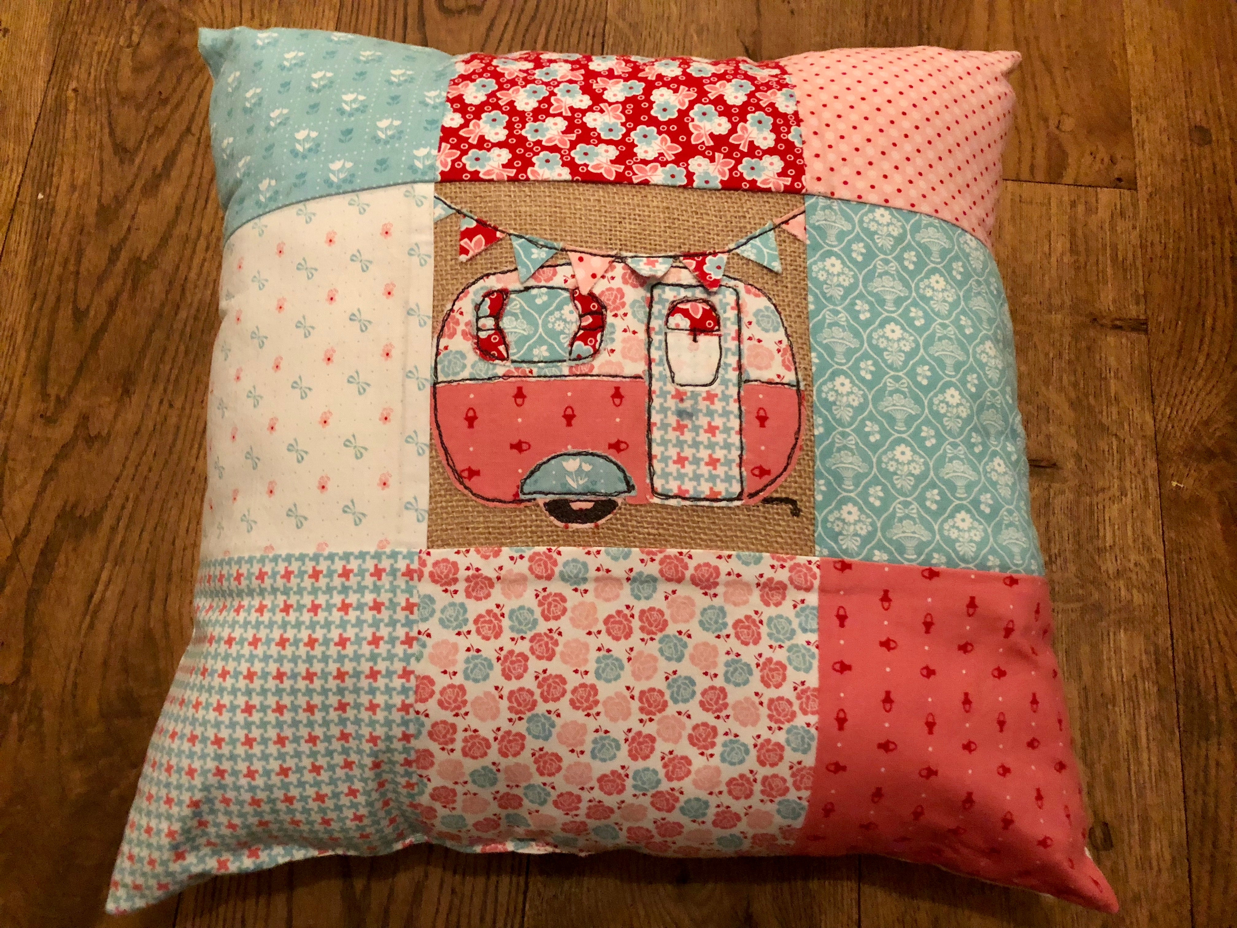 This caravan template is perfect for applique or free motion sewing! It has separate windows, door, curtains, hitch and decorations!